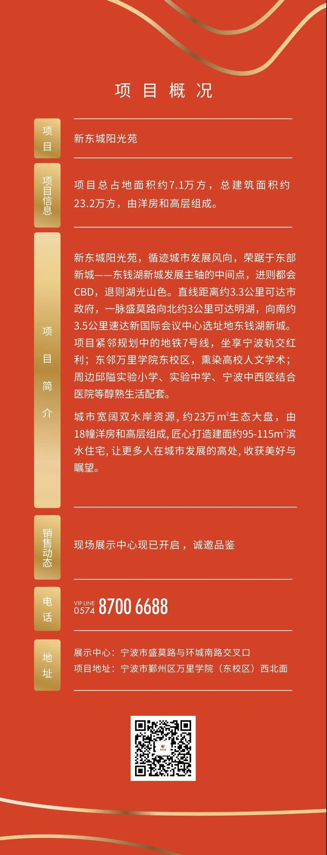 新东城阳光作为恒厚集团2020迭代力作,延续恒厚深耕宁波30年匠心,打造出都市繁盛与和谐自然并重的宜居佳品。择址东部新城明湖南,直线距离约3.3公里可达市政府,向北3公里即是明湖,向南约3.5公里即是东钱湖新城,进拥千亿东城繁华,退揽湖光山色;毗邻地铁7号线(规划),坐享地铁红利;北依环城南路高架,东邻万里学院东校区,周边邱隘实验小学、邱隘实验中学、宁波中西医结合医院等生活配套更是醇熟无忧。